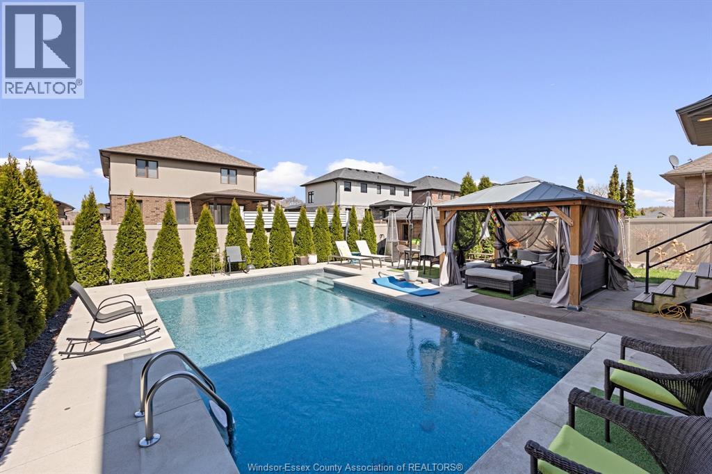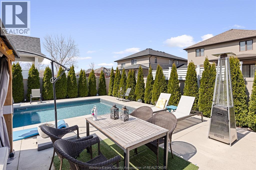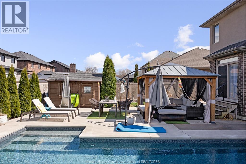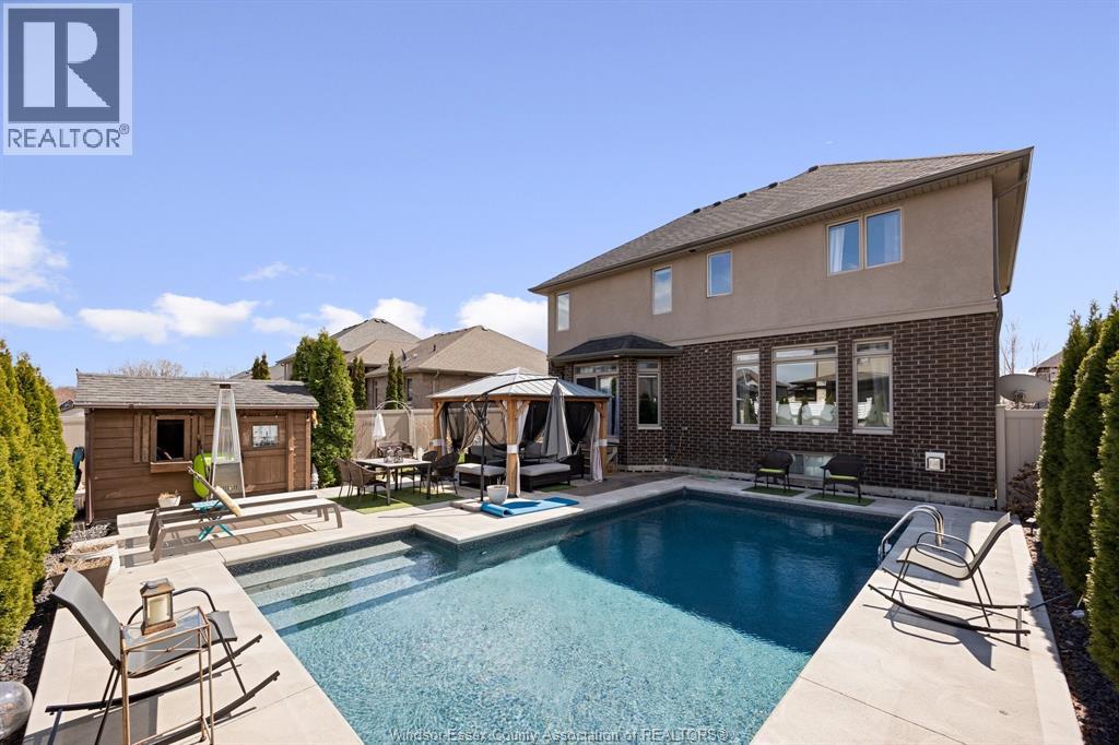 This is the one families wait for! Welcome to this beautifully maintained 2- storey in sought-after LaSalle, offering space, style & a backyard built for memories. Featuring 4+ bedrooms & 3.5 baths, this home boasts a bright open-concept main floor w/gas fireplace, spacious kitchen w/large isl, granite & ample cabinetry, formal dining w/bar/refreshment area & a private office. Upstairs offers a generous primary suite w/stunning ensuite & oversized walkin closet, plus 3 additional bedrooms & convenient 2nd floor laundry. Fully finished lower level includes extra den/bedroom, full bath, family rm w/fireplace & rec space. Step outside to your private oasis w/an inground heated swimming pool (2022), large patio & fenced yard—perfect for entertaining. Oversized 2.5 car garage w/rear door access. C/Vac, water purification system, HRV, so much more. Close to a park, conveniences, schools and golf. Now offering flexible 30–90 day possession! (id:4555)